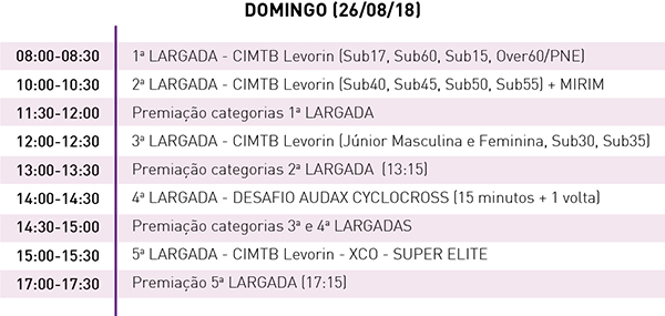 Em paralelo com o festival acontece uma etapa da CIMTB Levorin. Com atletas da elite o evento tem provas de Cross Country (XCO), Short Track (XCC) com pontuação para o ranking UCI. Nesta sexta pela manhã a Super Elite Feminina e Masculina fizeram o Short Track.Confira a programação: