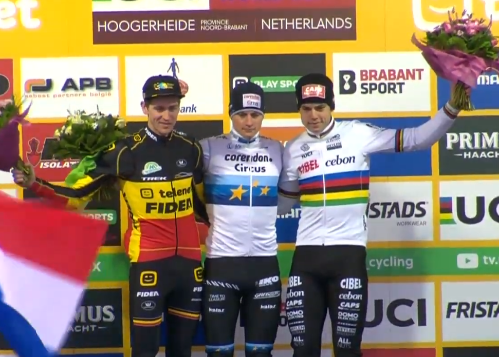 O holandês Mathieu Van der Poel deu show novamente na Copa do Mundo de Ciclocross. Desta vez em Hoogerheide na fronteira entre Holanda e Bélgica. Após ficar um bom tempo no pelote disputando com Wout Van Aert, Van der Poel alcançou o escapado Toon Aerts, passou e… banzai! Em segundo ficou Toon Aerts que com o resultado conquistou a Copa do Mundo de Ciclocross e Wout Van Aert foi o terceiro.