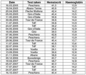 “Na luz da recente revelação tanto no ciclismo como no esqui, é bem óbvio que o passaporte biológico esta longe de ser uma garantia de esporte limpo. Esses são os números do meu sangue entre 2005 e 2007. Eu acredito que passaria pelo atual sistema (de controle anti-doping).”