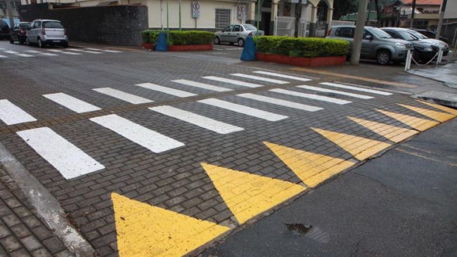- Utilização de faixa de pedestre elevada, favorecendo a travessia de pedestres.