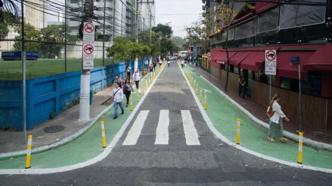 - Barreiras físicas para promover a segregação de pedestres e ciclistas para com veículos automotores.