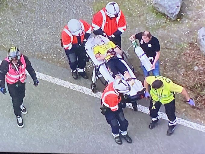 Ciclistas caíram em alta velocidade. O dinamarquês bicampeão do Tour de France, JonasVingegaard precisou de atendimento e foi levado para o hospital.