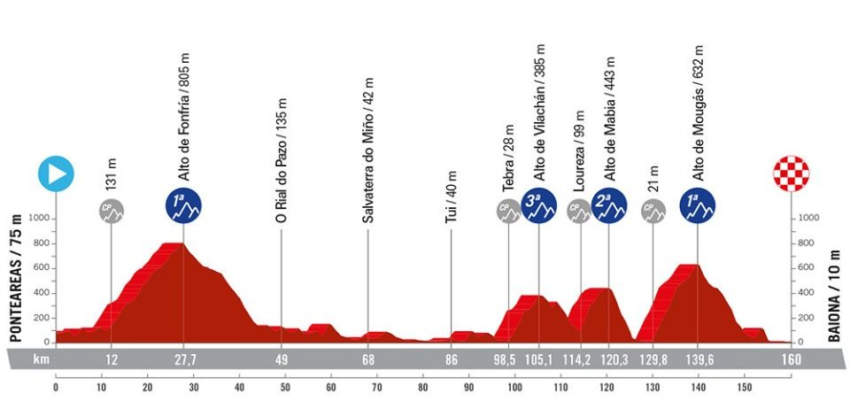 Após o dia de descanso a La Vuelta fez o traslado da quente Andaluzia para o noroeste espanhol na Galícia com a largada próximo a Vigo, pertinho da divisa com Portugal em Ponteareas. Uma etapa com jeito de fuga com duas subidas Cat, uma Cat
