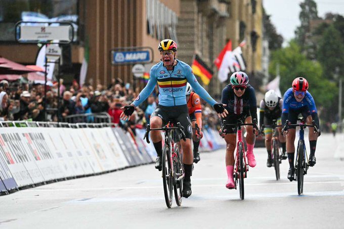 A 10km do final na subida, Lotte Kopecky acelerou, Vollering contra-atacou colocando em dificuldades Marianne Vos, Ghekiere e Riejanne Markus. No final, seis ciclistas, seis nações diferentes foram para o sprint, Longo Borghini lançou primeiro, Chloe Dygert acelerou de forma incrível, mas foi Lotte Kopecky quem se sobressaiu e tornou-se bicampeã mundial! Chloe Dygert foi a segunda e logo desabou sentindo espasmos em sua perna direita enquanto Elisa Longo Borghini ficava com o terceiro lugar.