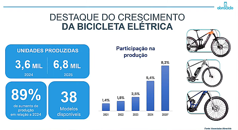 Um dos destaques foi o setor de bicicletas elétricas, considerado um dos mais lucrativos e promissor para o futuro da mobilidade. A produção deste segmento registrou um crescimento expressivo de 89%, representando 2,8% da produção total – um aumento significativo na participação de mercado.